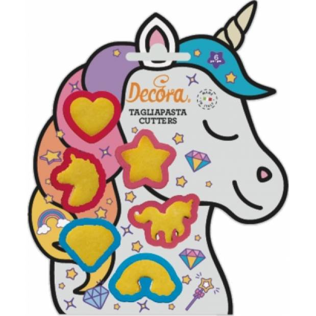 Mini plastová vykrajovátka na cukroví a sušenky s motivem jednorožce. Vhodné pro vykrajování sušenek a fondantů. Sada obsahuje následující tvary: srdce, hvězda, jednorožec hlava, diamant, duha, jednorožec. Velikost vykrajovátka: cca 4 cm. V balení 6 ks.