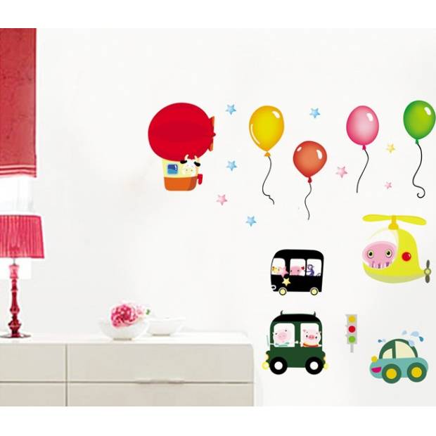 Samolepka na zeď  balonky a auta - nalepimeto