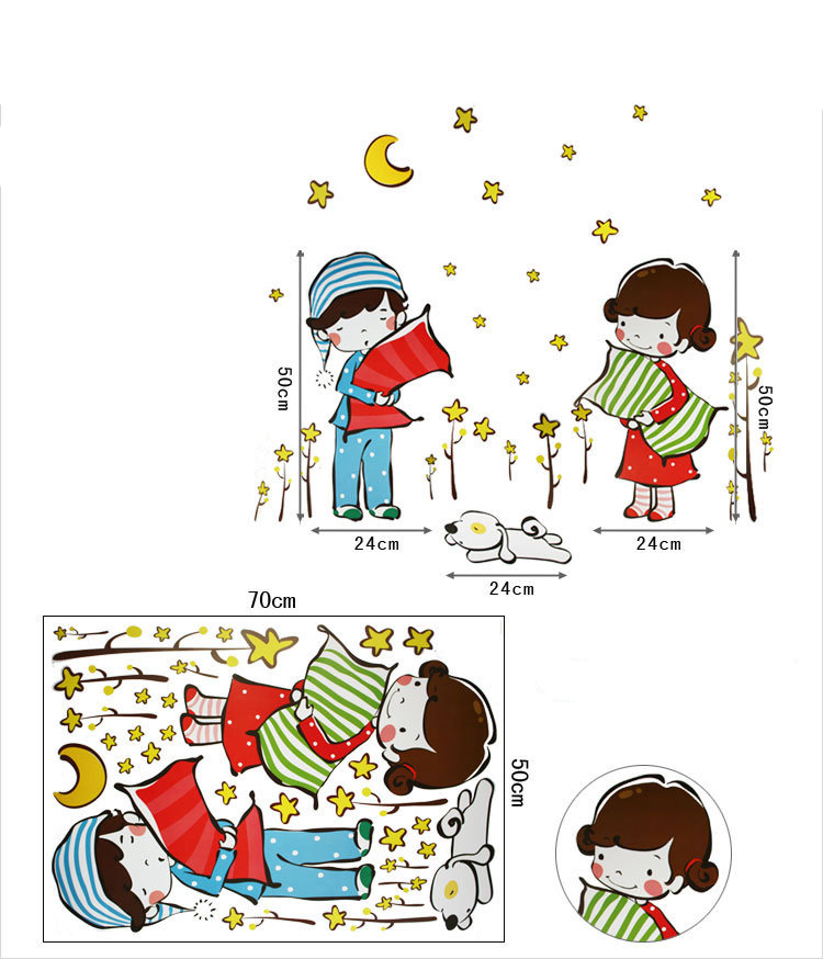 Zkrášlete dětem jejich pokojíček! Děti milují pestré barvy a veselé motivy, a to všude, kde je to jen možné. Pokud jim zrovna nechcete pestrobarevně vymalovat pokojíček nebo vytvářet na zdech malované obrázky, je zde i mnohem lepší varianta, a to samolepky určené na zeď. Veselé samolepky „Čas spánku“ jsou ideální volbou pro dětský pokoj. A až vaše děti vybraný motiv omrzí, můžete jej snadno nahradit jiným.