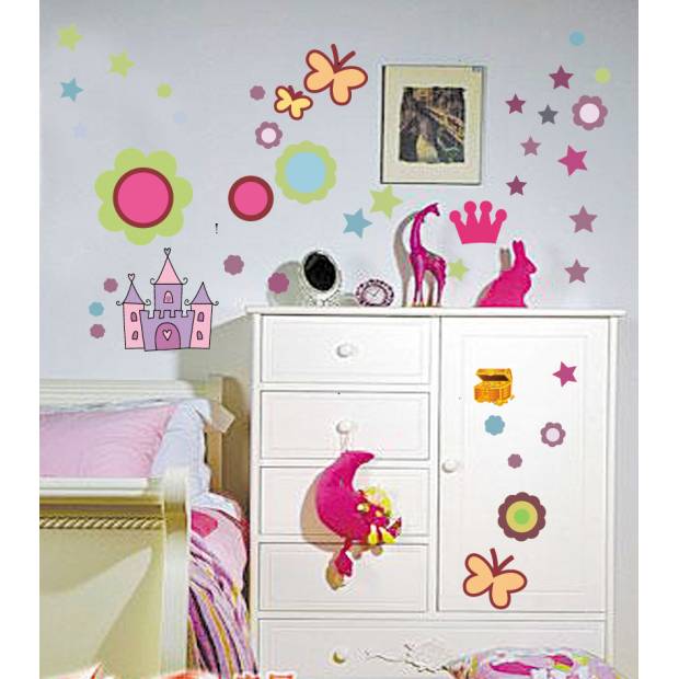 Zkrášlete dětem jejich pokojíček! Děti milují pestré barvy a veselé motivy, a to všude, kde je to jen možné. Pokud jim zrovna nechcete pestrobarevně vymalovat pokojíček nebo vytvářet na zdech malované obrázky, je zde i mnohem lepší varianta, a to samolepky určené na zeď. Veselé samolepky „Pokojové doplňky pro princezny“ jsou ideální volbou pro dětský pokoj. A až vaše děti vybraný motiv omrzí, můžete jej snadno nahradit jiným.