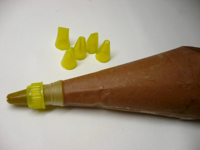 Sáček a šest trysek s různým tvarem na jednoduché zdobení dortů a dalších pekařských výrobků