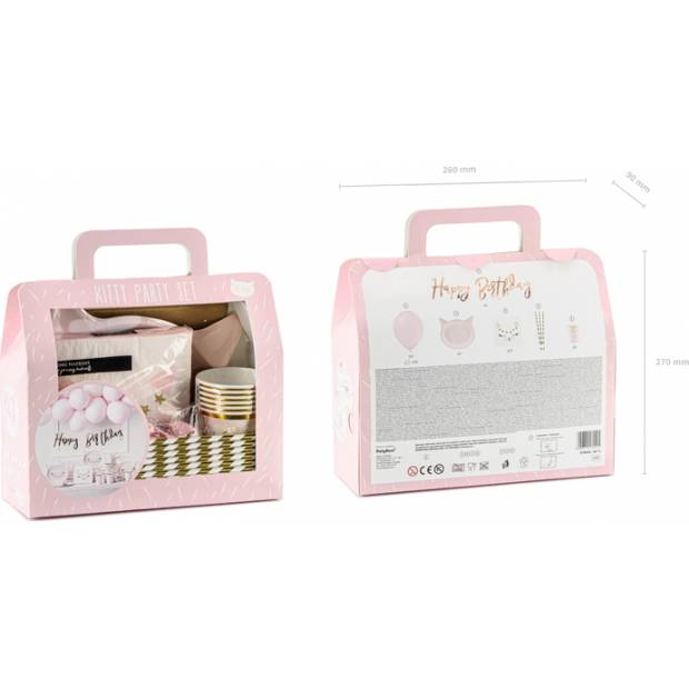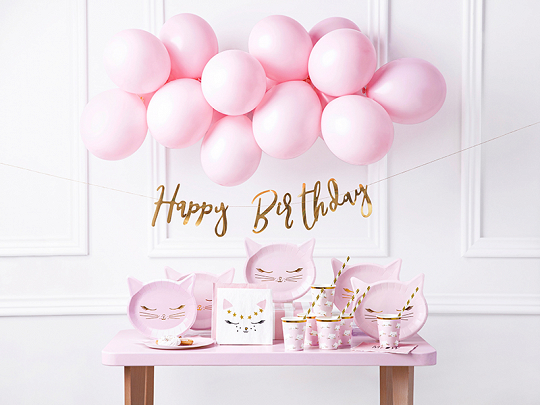 Uspořádejte tu nejlepší párty na světě. Sada dekorací na večírek - Kočka, sada obsahuje: nápis happy Birthday 12x růžový balonek 6x talíř kočička 20x ubrousek 10x papírové brčko zlaté 6x papírový kelímek