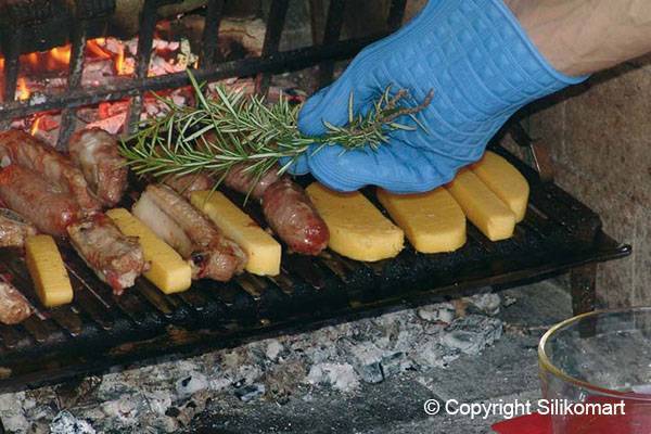 Prstová silikonová chňapka pro manipulaci s horkými pokrmy.