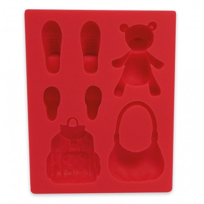 Tato nová sada forem na příslušenství od Sweet Revolutions umožňuje snadné vytváření roztomilých doplňků pro vaše figurky a modely dortů. Sada příslušenství zahrnuje: Medvídka, kabelku, batoh, tenisky a boty na platformě. Formy jsou univerzální a lze je použít s jakoukoli kvalitní modelovací pastou nebo cukrovou pastou. Může být také použit s květinovou pastou, modelovací čokoládou a marcipánem. Každá forma je vyrobena z vysoce kvalitního potravinářského silikonu, speciálně navrženého pro pomoc při výrobě bezchybných dortových dekorací.
