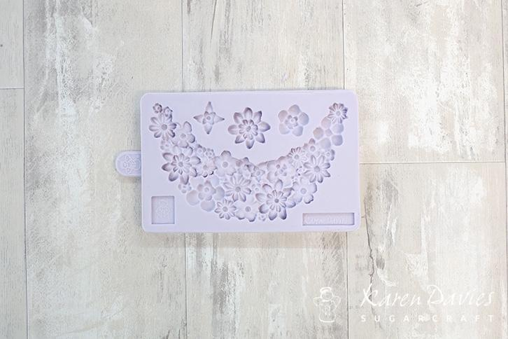 Silikonová forma pro vytvoření květinové girlandy z marcipánu.