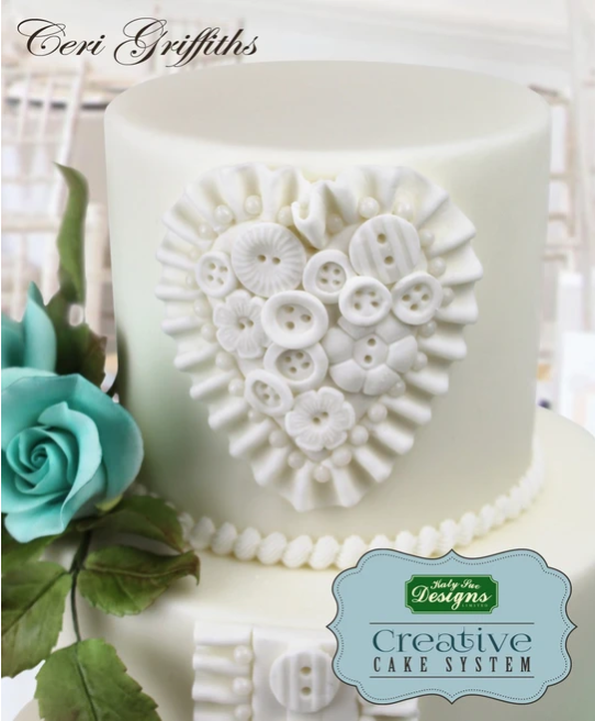 Vytvarujte si jednoduše touto silikonovou formou jedlé dekorativní knoflíky. Tyto formičky vypadají krásně jako dekorace na svatební dort. Používají se s cukrovou nebo fondánovou pastou. S formami se velmi dobře pracuje. Rovnoměrně dovnitř vtlačte hmotu, válečkem ji rovnoměrně uhlaďte. Přebytečnou hmotu seškrábněte a poté pastu odtlačte od krajů, abyste ji z formy uvolnili. Hotovou výzdobu si uložte na suchý a čistý povrch. Použijte strukturální podložku s motivem pleteného vzoru a vytvořte jedinečný dort.