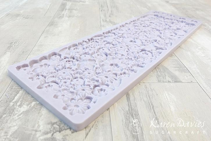 Silikonová forma pro vytvoření květinových ornamentů z marcipánu nebo fondánu na dortech.
