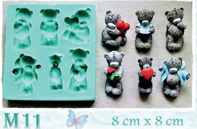 Silikonová forma s motivem medvídků v různých podobách.