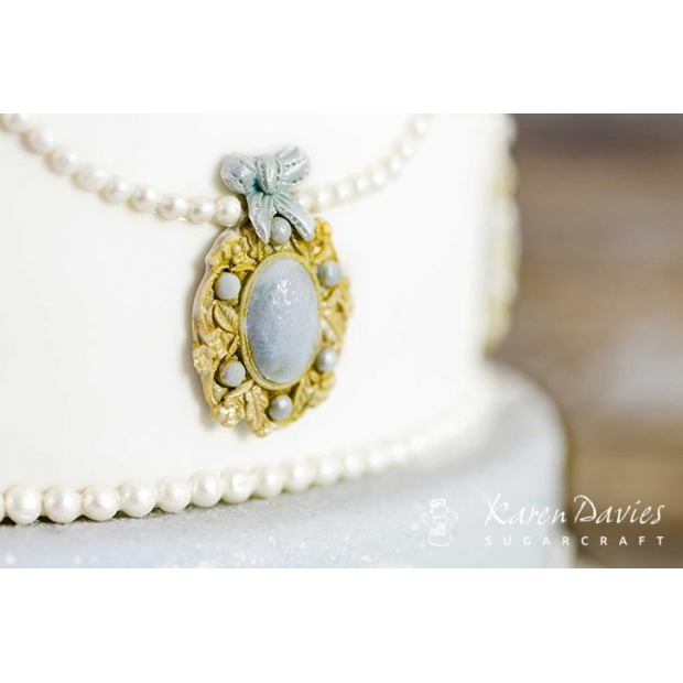 Silikonová forma je vyrobena z vysoce kvalitního silikonu pro vytvoření realistických postav. Velmi oblíbeným designem svatebního dortu je stuha kolem dortu připevněná broží. Je vhodná pro použití s marcipánem nebo fondánem. Formu je možné mýt v myčce nádobí.