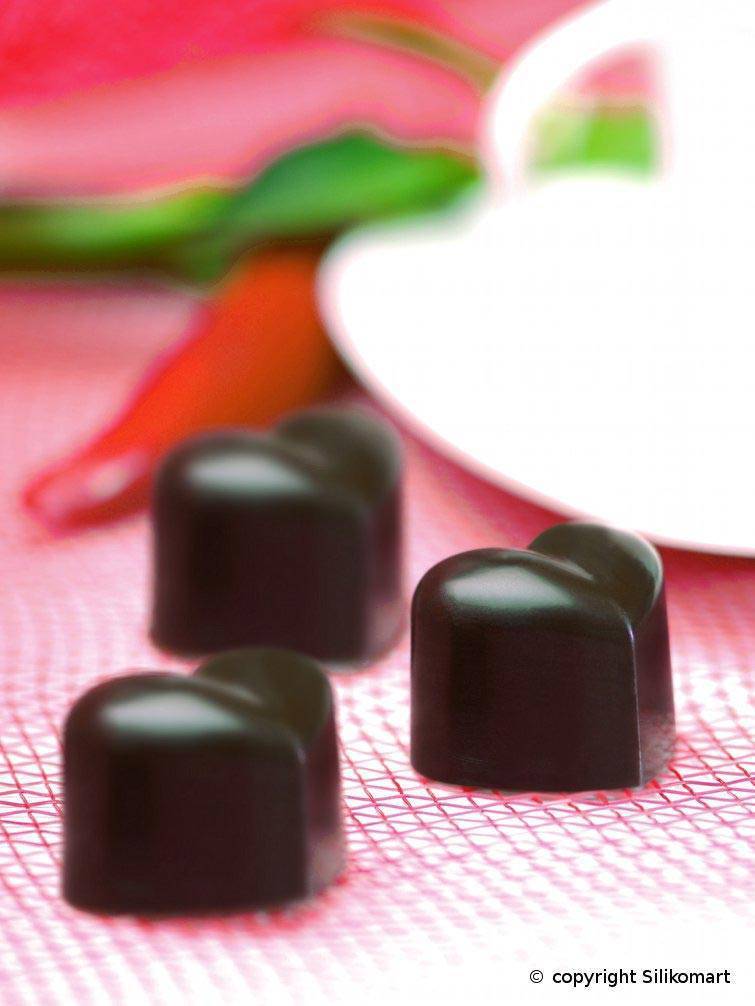 Silikon je víceúčelový materiál. V této formě můžete vyrábět srdíčkový led (vydrží teploty do -60°C), který zpestří vaše nápoje. Nebo můžete do formy nalít čokoládu a vyrobit krásné bonbony.Nechali jsme pro vás otestovat foodblogerem:Velmi jsem si oblíbila silikonové formy na čokoládu Silikomart, jsem s výrobky této značky velmi spokojená. Jsou k dostání v různých provedeních a vybere si opravdu každý. Tato srdíčková forma se využije celoročně a to ke všem příležitostem. Domácí pralinky nebo čokoláda v tomto tvaru bude ale nejvíce žádaná na Valentýna. Pokud se forma použije pouze na čokoládu, tak jí bude potřeba 180 – 190 g. Můžou se použít všechny druhy, jak mléčná, hořká, tak bílá. Pokud si někdo bude chtít vyrobit pralinky, tak stačí 120 g čokolády a nějaká trvanlivější náplň. Např. velmi jednoduchá: 50 g kokosu se smíchá s 80 g slazeného kondenzovaného mléka. Možností je mnoho a kreativitě se meze nekladou. Při výrobě pralinek postupuji tak, že rozpustím čokoládu v hrnci – vodní lázeň, menším štětcem ve slabé vrstvě vymažu prohlubně ve formě a čokoládu nechám v chladu ztuhnout. Pak ještě jednou zopakuji a po opětovném ztuhnutí naplním nádivkou malý kousek pod okraj a dorovnám čokoládou. Povrch urovnám a případnou nadbytečnou čokoládu setřu mimo formu. Nechám několik hodin v chladu, nejlépe přes noc a pralinky z formy vyloupnu. Jde to perfektně. Pokud někdo bude chtít jen odlít čokoládu, tak po rozpuštění a naplnění formy doporučuji s formou několikrát bouchnout z výšky o desku stolu, aby tam nezůstaly vzduchové bublinky. Pokud do mírně ztuhlé čokolády ve formě zafixujeme dřevěné míchátko, tak pak se srdíčko použije na horkou čokoládu, kdy se čokoládka vloží do horkého mléka a mícháním se nechá rozpustit. Do čokolády se při výrobě může přidat malinko skořice. Všem doporučuji zhlédnout video s radami pana Radka Šubrta, mně osobně to hodně pomohlo.Přeji všem hodně radosti a zdaru při výrobě čokoládek nebo pralinek a věřím, že s touto formou budete spokojeni tak, jako já. V letních měsících se dá samozřejmě využít na přípravu ledu k ochlazení nápojů. M.F.
