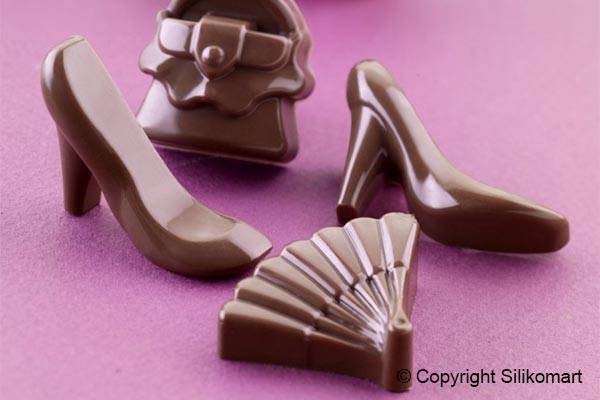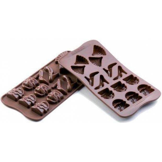 V této formě vyrobíte zábavné figurky, které potěší modní nadšence. Objem formy je 96ml a rozměry jednotlivých bonbonů jsou 4x3x1,2cm. Figurky můžete podávat jako dezert ke kávě, nebo jimi ozdobit dort. Rozpuštěnou čokoládou naplňte formu, přebytek setřete stěrkou a formou poklepejte o pracovní desku, aby v čokoládě nebyly bublinky. Čokoládky dejte ztuhnout do chladu (forma vydrží teploty do -60°C). Díky nepřilnavosti a pružnosti silikonu bonbonky vždy snadno vyloupnete.