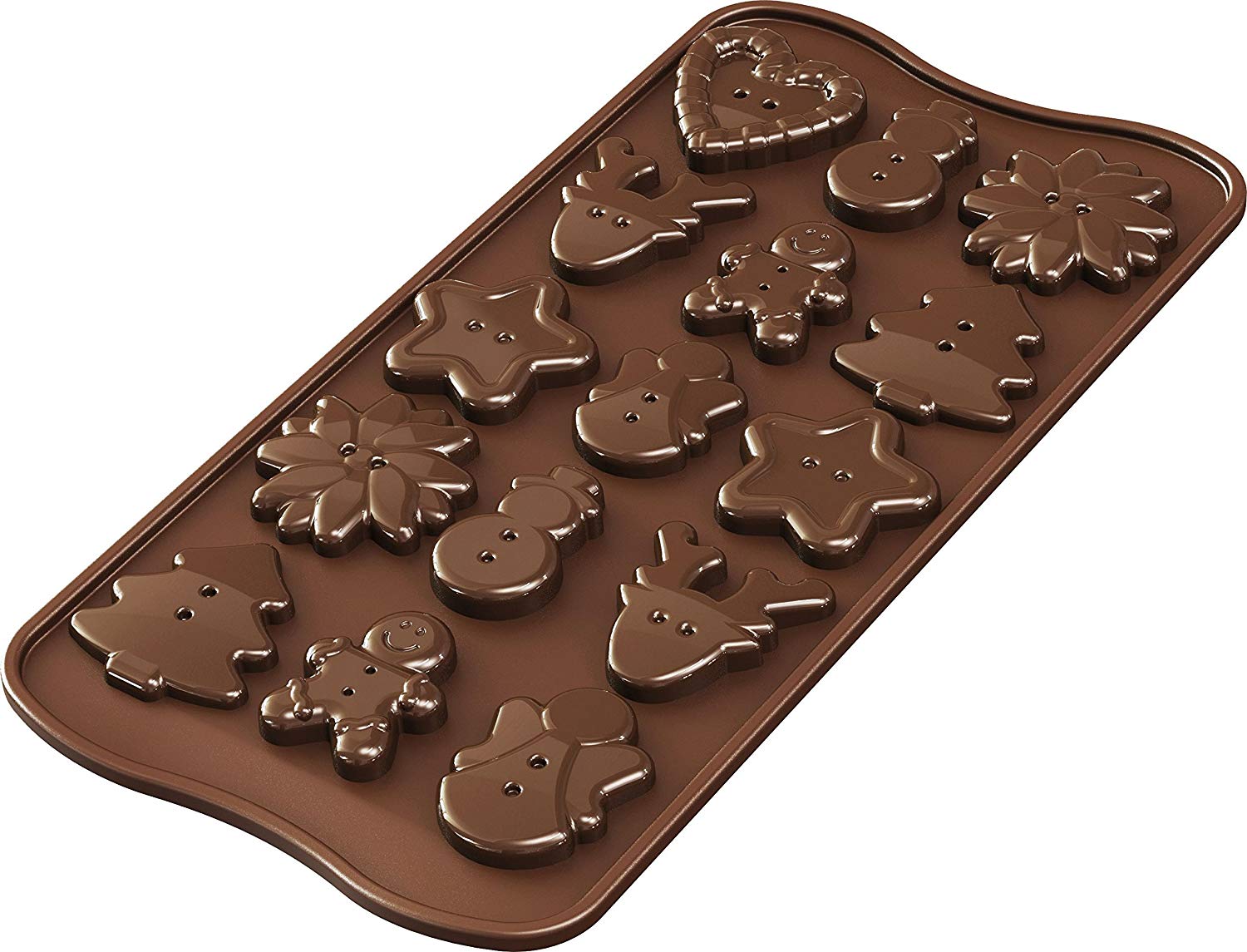Forma na přípravu 15ti čokoládových bonbonků ve tvaru knoflíku s různými vánočními motivy,
