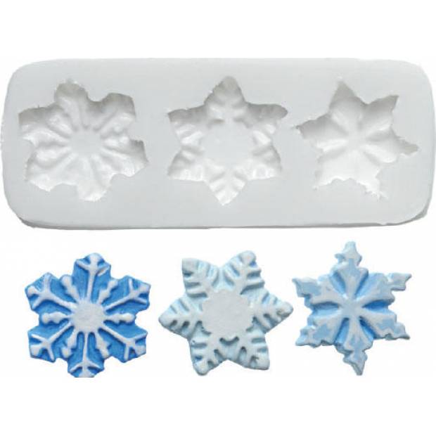 Pružná, odolná a navíc nepřilnavá – taková je silikonová forma na marcipán. Stačí do ní hmotu natlačit a následně vyloupnout. Hotovo. Vzniknou tři do detailů propracované sněhové vločky, které můžete použít jako ozdobu na dort či dortíček. Rozměry vloček: 30 x 35 mm; 32 x 32 mm; 32 x 33 mm.