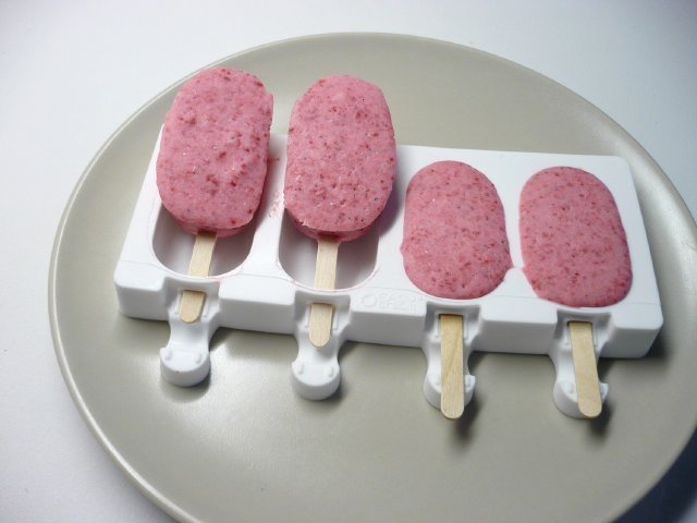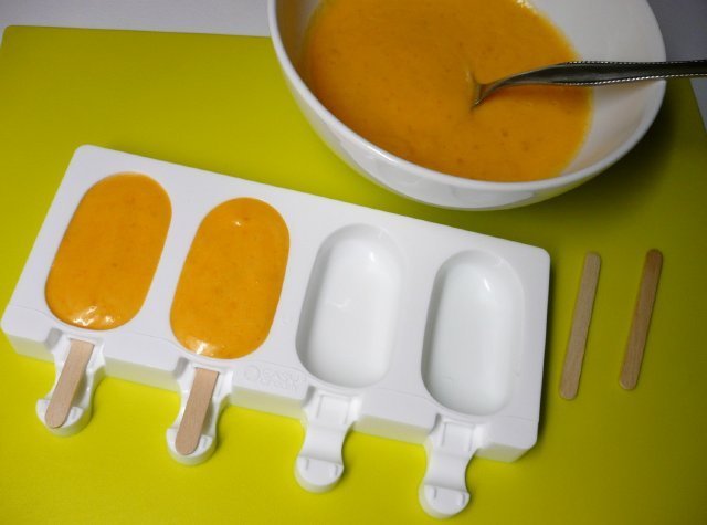 Tato forma není určena na vodové nanuky, směs musí být dostatečně hustá, aby nedocházelo k vytékání obsahu skrz otvor pro dřívko k nanuku.