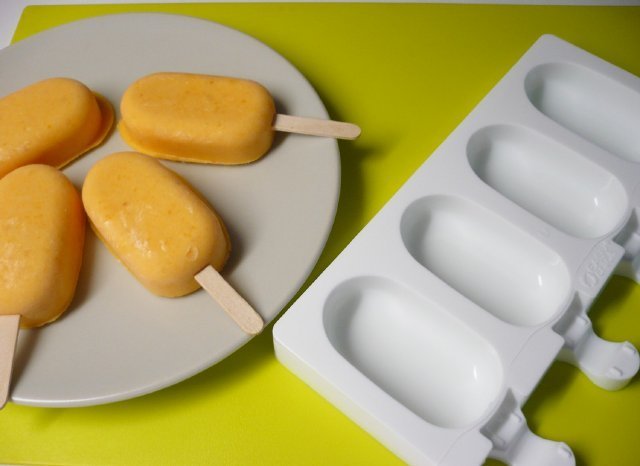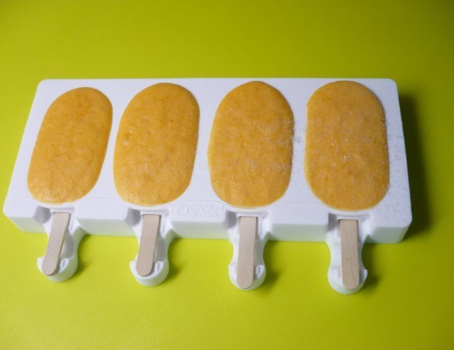 S touto silikonovou formou na nanuky se pracuje opravdu skvěle, lehce, rychle a jednoduše. Měla jsem už různé formy na nanuky, jak plastové, tak i z tužšího silikonu, ale tato je nejlepší. Nanuky mají na výšku 7 cm, na šířku 4 cm a hloubka formy je cca 2 cm. Objem jednoho kusu je 36 ml, ale pokud je hmota hustější a soudržná, může se trochu do formy navršit. Celá forma má rozměry 20 x 8,5 cm, ale vyčnívají ještě podpěry na dřívka, ty měří 3 cm. V nabídce tohoto e -shopu je ještě jedna forma ze stejného materiálu, ale na dva větší nanuky. Tak si každý vybere podle svých potřeb. Velikost těchto nanuků je ale pro běžnou konzumaci dostačující. Tato forma nezabere v mrazničce moc místa, což je bezesporu taky velkou výhodou. Nanuky se dostávají z formy velice lehce, jen se „vyloupnou“. Vyjímají se od špičky a tlakem na dřívko se z formy vytlačí. Jde to velice dobře a lehce, nanuky se nepoškodí. Nanuky se můžou udělat do zásoby, po vyjmutí z formy se dále skladují v mrazničce v dobře uzavřené dóze.