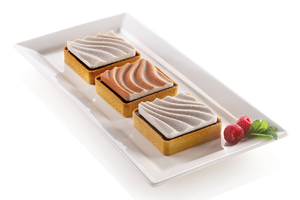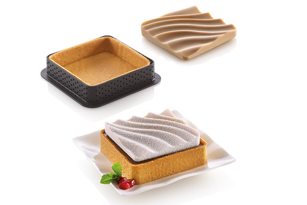 Nový způsob, jak pojmout koláč a učinit tento tradiční dezert ještě podmanivějším a modernějším. KIT MINI TARTE SAND od SIlikomartu se skládá ze dvou prvků: 6 mikroperforovaných čtvercových prstenců pro vytvoření křehké dortové základny a formy SIlicone, která zaujme svou elegantní a zvlněnou výzdobu. Speciální čtverce jsou vyrobeny z nového nepřilnavého plastového materiálu, který je ideální pro homogenní vaření v troubě. Forma na pečení v podobě stavebnice Mini Tarte Sand je skutečným koncentrátem sladkosti a modernosti, který umožňuje vytvoření moderních dortů s mimořádnou výzdobou nahoře. Rozměry 67mm x 67mm x 15mm a objem 45 ml. Určena pro 6 kusů moučníků.