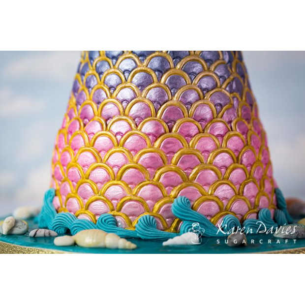 Vyrobte si krásné šupinkové dorty s touto silikonovou formou od Karen Davies. Tato široká forma je ideální pro zdobení narozeninových dortů, ale i svatebních dortů. Je vyrobena z kvalitního silikonu a je vhodná pro mytí v myčce nádobí.
