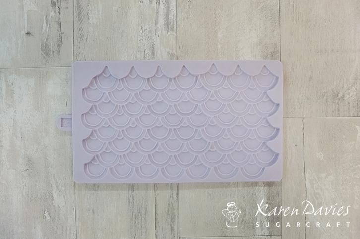 Silikonová forma pro vytvoření povrchu se strukturou šupiny na dortech.