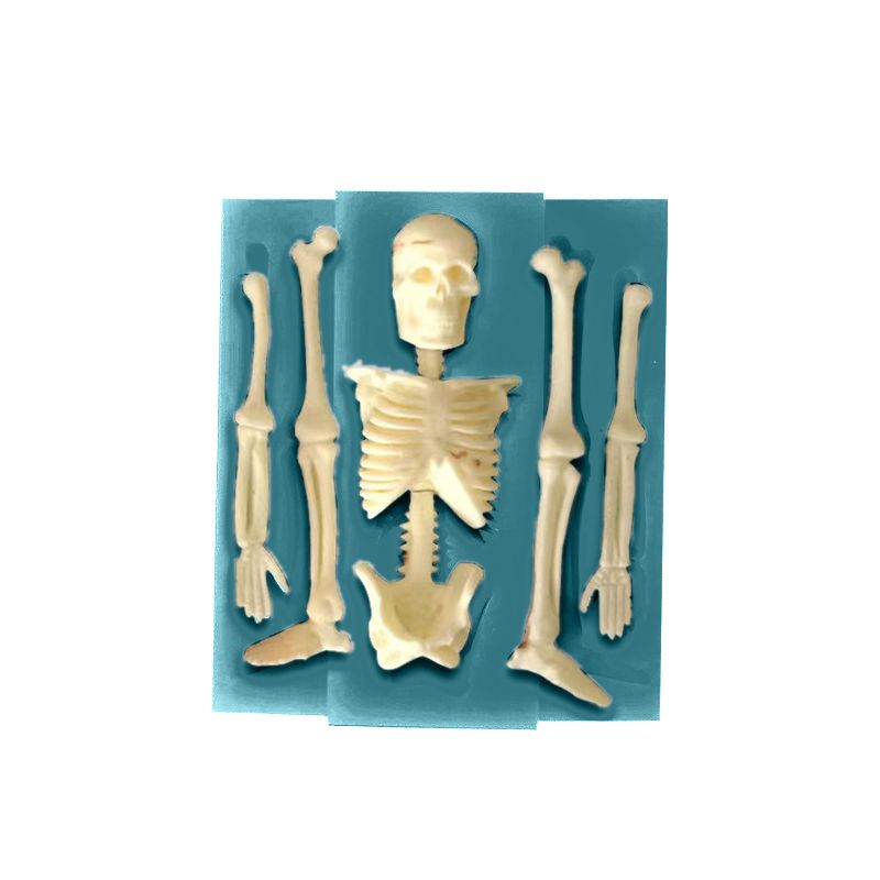Praktická silikonová formička na hmoty jako fondán, marcipán či čokoládu je perfektní pomůcka, která vám umožní vytvořit úžasné ozdoby dortu v podobě kostlivce. Tato vysoce kvalitní silikonová forma je ideální pro vytváření dekorací s konkrétní tématikou. Díky této formě snadno vytvarujete různé druhy cukrové pasty, jako je marcipán nebo plastová poleva, a vytvoříte tak fantastické detaily. Forma je extrémně flexibilní a nepřilnavá, díky čemuž lze vylisované prvky snadno oddělit od formy bez poškození. Tato silikonová forma je odolná a snadno se čistí. Dá se používat znovu a znovu, takže je nezbytnou pomůckou každého domácího cukráře.