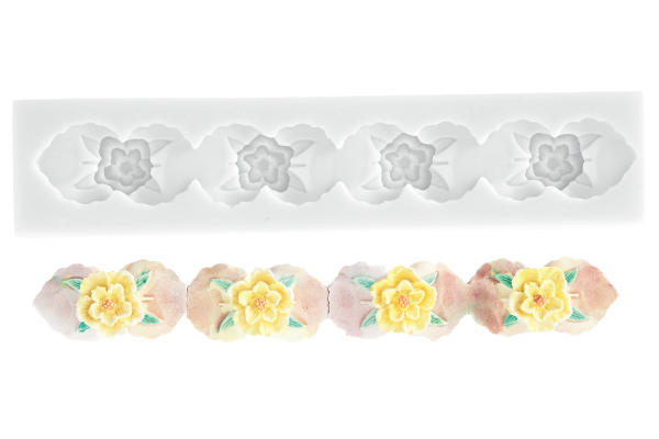 Silikonová forma na ozdobný květinový lem. Rozměry 165 x 25 mm.