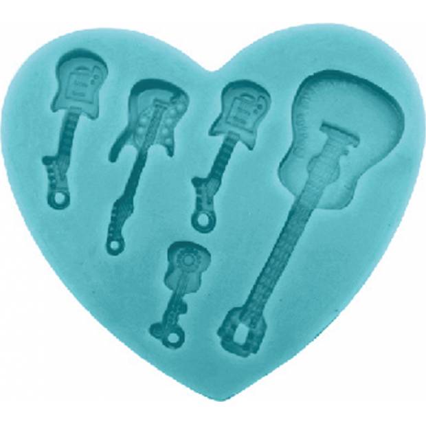 Silikonová formička ve tvaru srdce je na modelaci do detailu propracovaných kytar. Po naplnění hmotou a vyjmutí dekorů z formy získáte dokonale vypracovaný produkt. Hotové výtvory můžete ozdobit sypáním, polevou či jedlým třpytivým gelem. Forma je vyrobena ze zdravotně nezávadného silikonu, který je určen pro kontakt s potravinami. Lze mýt v myčce nádobí.