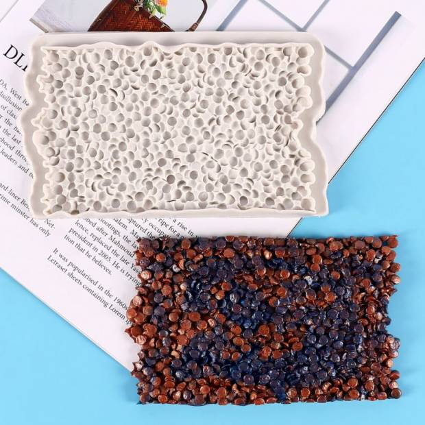 Praktická silikonová formička na tvorbu motivu povrchů s motivem mušlí, kamínků či hvězdic na fondán, marcipán či čokoládu je perfektní pomůcka, která vám umožní vytvořit úžasné ozdoby dortu. Tato vysoce kvalitní silikonová forma je ideální pro vytváření dekorací se zajímavým vzorem. Díky této formě snadno vytvarujete různé druhy cukrové pasty, jako je marcipán nebo plastová poleva, a vytvoříte tak fantastické detaily. Forma je extrémně flexibilní a nepřilnavá, díky čemuž lze vylisované prvky snadno oddělit od formy bez poškození. Tato silikonová forma je odolná a snadno se čistí. Dá se používat znovu a znovu, takže je nezbytnou pomůckou každého domácího cukráře.