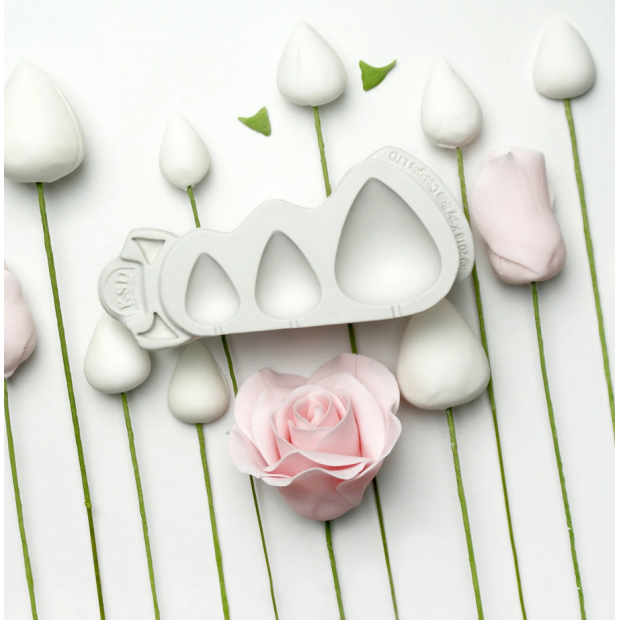 Formy Katy Sue jsou vyrobeny z potravinářského silikonu a jsou vyráběny ve vlastní továrně ve Velké Británii. Obsahuje 3 velikosti kužele pro práci s vykrajovátky růží s pěti okvětními lístky 70 mm, 90 mm a 110 mm.
