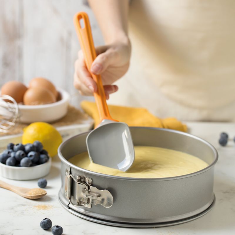 Kuchyňské náčiní ze 100% platinového silikonu s ergonomickou plastovou rukojetí. Nepostradatelné pro míchání jakéhokoli typu těsta, je vhodné na sladké i slané. Se zaobleným pružným okrajem pro snadné zachycení zbytků těsta i v menších nádobách. Rukojeť: 19,5 cm Lopatka: 8 cm
