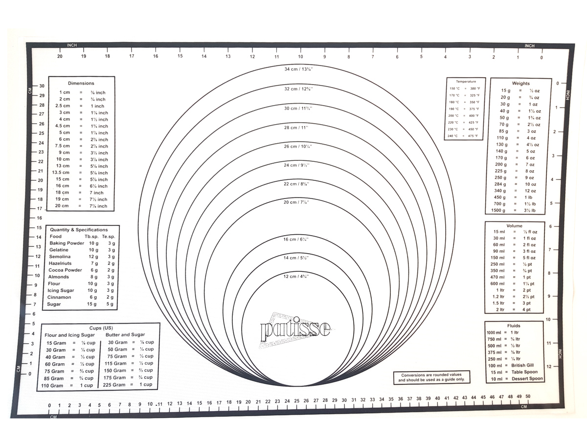 Silikonová pečící podložka Patisse je praktická pečicí podložka, která je ideální pro vyválení fondánového, marcipánového nebo sušenkového těsta. Podložka na pečení ukazuje rozměry, takže je snazší vyválet požadovanou velikost.