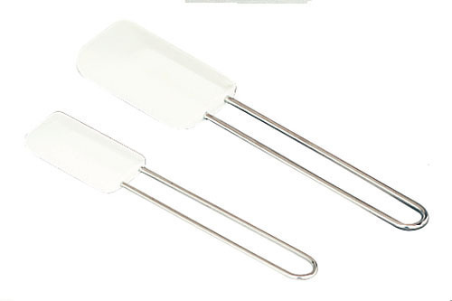 Silikonová stěrka s nerezovou rukojetí o délce 26 cm.