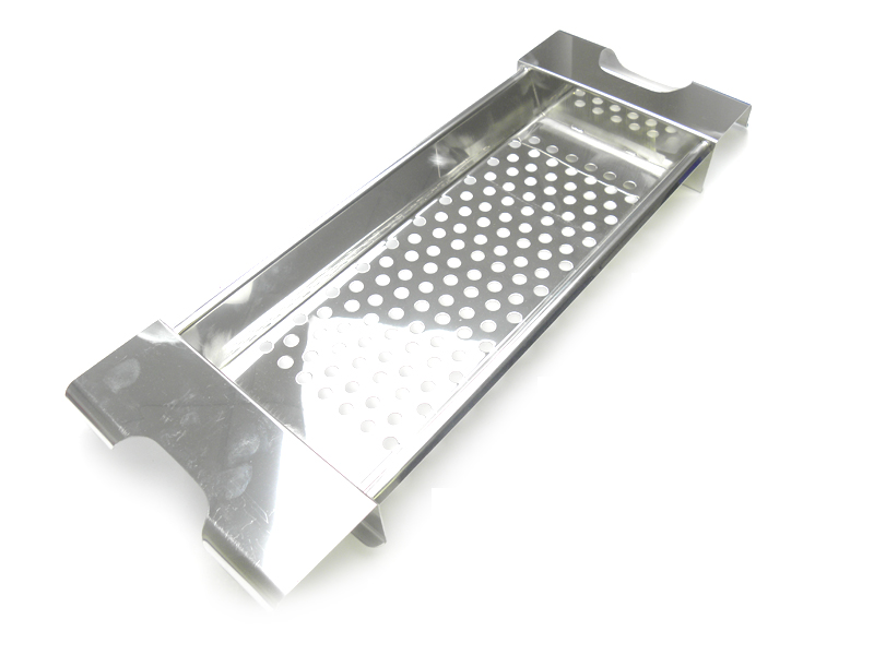 Nerezové síto na halušky či knedlíčky. Síto můžete položit rovnou na hrnec (délka síta je 40 cm) díky držákům a strouhat halušky přímo do vroucí vody.