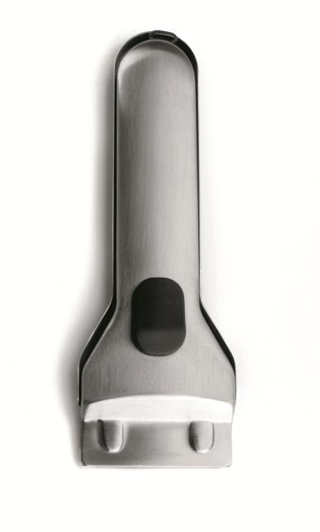 Škrabka se speciálním zakončením, pomocí kterého šetrně odstraníte i silně připálené nečistoty ze sklokeramické nebo indukční desky. Škrabka je vyrobena z oceli 18/10. Délka 13 cm.