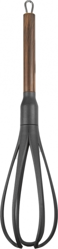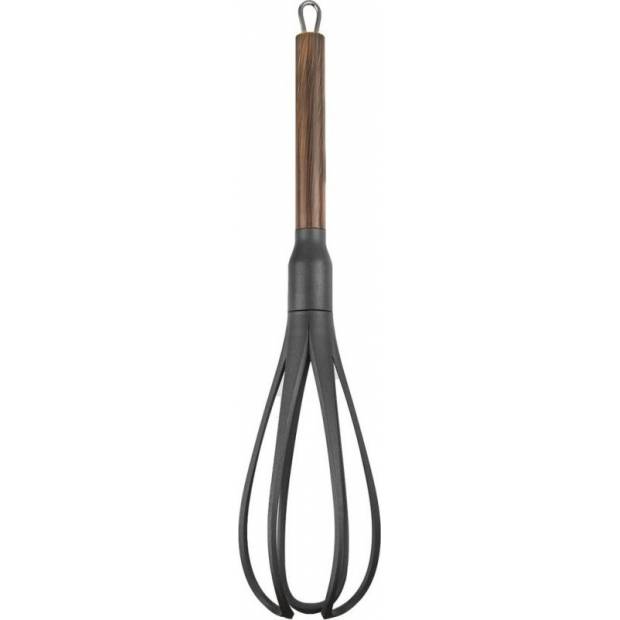 Praktická kuchyňská šlehací metla z odolného termoplastu PBT, kterou lze použít na nejrůznějších typech nádobí. Od nerezu, litiny až po nepřilnavé teflonové povrchy, u nichž by použitím kovového náčiní mohlo dojít k poškození antiadhézní vrstvy. Nerezová rukojeť s nástřikem dekoru dřeva.