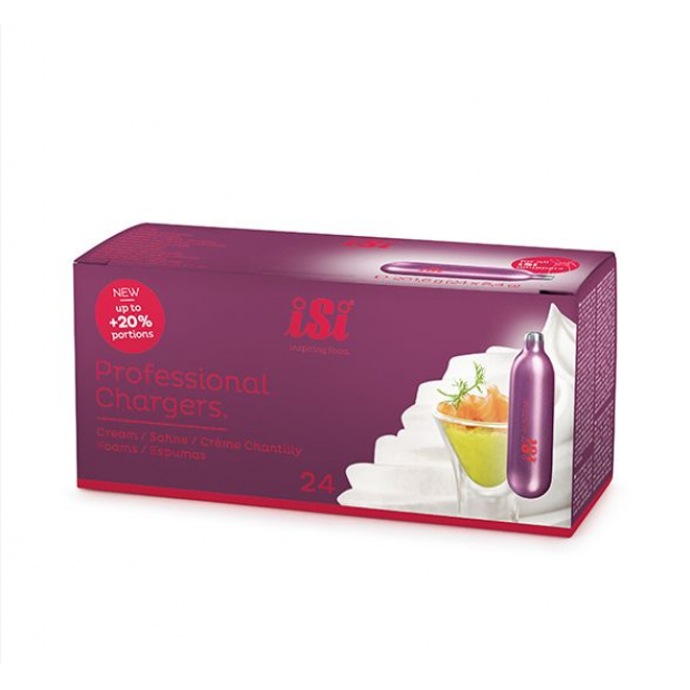 Tyto špičkové bombičky na šlehačku jsou vhodné pro použití v šlehačkových láhvích iSi, ale i dalších systémech jako jsou Tescoma, Liss, Hendi, Mossa a další. Nejsou kompatibilní se šlehači, které využívají výměnné bombičky Sifos a Kisag. Pouze originální bombičky na šlehačku iSi mohou poskytnout kvalitu a chuť, kterou chtějí nároční spotřebitelé. Vzhledem k tomu, že jsou vyrobeny výhradně pro šlehačkové láhve, jsou tyto bombičky dokonale navrženy a plněny a jsou podpořeny 100% testováním kontroly kvality. Tyto šlehačkové bombičky jsou vyrobeny ze 100% recyklovatelné oceli. Jsou nepropustné, lze je používat i po datu spotřeby uvedeném na obale, není však garantován výrobcem obsah plynu 8,4 g. Vlastnosti: Balení 24 ks dusíkových bombiček do šlehačů smetany Nejlepší volba pro mléčné alternativy a smetanu s nízkým obsahem tuku Nejlepší výsledky šlehání s méně kalorií Funguje se všemi iSi šlehači Našlehá až o 20 % více porcí pro úsporu nákladů na smetaně Dělají silné rychlé infuze Vyrobeno ze 100% recyklovatelné oceli