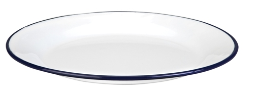 Smaltované talíře si opět získávají na popularitě nejen díky vzhledu, ale také jejich odolnosti a nekonečné životnosti. Tento smaltovaný talíř o průměru 22 cm je vyveden v bílé variantě, ozdoben modrou linkou. Talíř lze mýt v myčce nádobí.