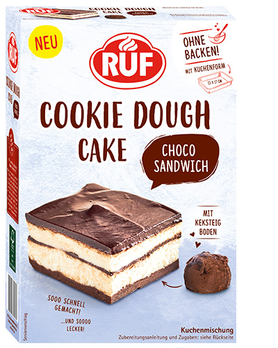 Směs těsta: pšeničná mouka, cukr, kakaový prášek se sníženým obsahem tuku (1.5 %), sůl, přírodní aroma. Kapky hořké čokolády (31 %): kakaová hmota, cukr, kakaové máslo, emulgátor lecitiny. Krémový prášek: cukr, želatina, maltodextrin, modifikovaný škrob, kyselina citrónová, aroma.