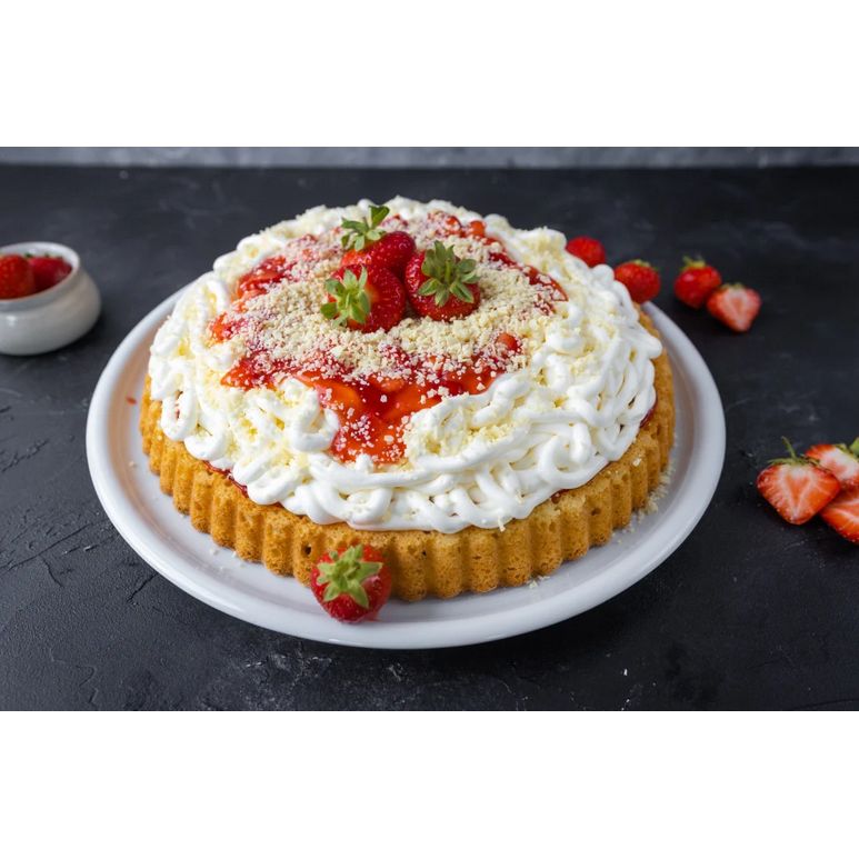 Lahodná a lehká smetanová náplň s jahodovými kousky plná ovocné chuti .