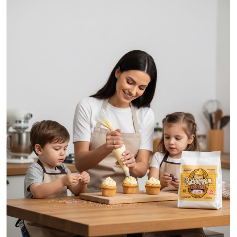 Směs stačí zředit 1:1 vodou a šlehat při střední rychlosti zhruba 2 – 3 minuty. Směs zhoustne a krém zůstane pevný. Místo vody lze použít mléko, směs je poté ještě lepší. Krémem lze zdobit dorty i cupcakes a to i koncovkou složitějších tvarů ( nyní tolik populární Ruské koncovky, ve tvaru různých květin ), jdou s tímto krémem opravdu dobře a navíc drží svůj tvar velmi dlouho. Krém se tedy nemusíte bát nechat ozdobený například 2 dny předem. Krém bude na svém povrchu pevný na dotek a ve vnitř pořád jemný. Do krému se může přidat i nastrouhaná čokoláda, nebo kokos, budete mít tak další variantu krému. Krém chutná sladce a opravdu čokoládově. V balení 300g bezlepkové směsi, která stačí na jeden dort běžné velikosti, nebo na přibližně 24 cupcakes.