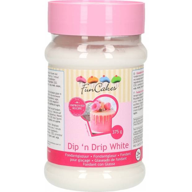 Tento výrobek je také známý jako glazura z bílého fondánu nebo litý fondán. S touto bílou polevou můžete dát vašim košíčkům nebo koláčům lesklou polevu, která ztuhne. Jednoduše rozpusťte Dip 'n Drip v mikrovlnné troubě a namočte košíček do polevy nebo ji nalijte na dort. Glazury trochu ztvrdnou a snadno se vybarví v jakékoli požadované barvě. Lze jej také použít k přidání akcentů vašim dekoracím pomocí zdobícího sáčku. Glazuru použijte také na zdobení domácích koblih.