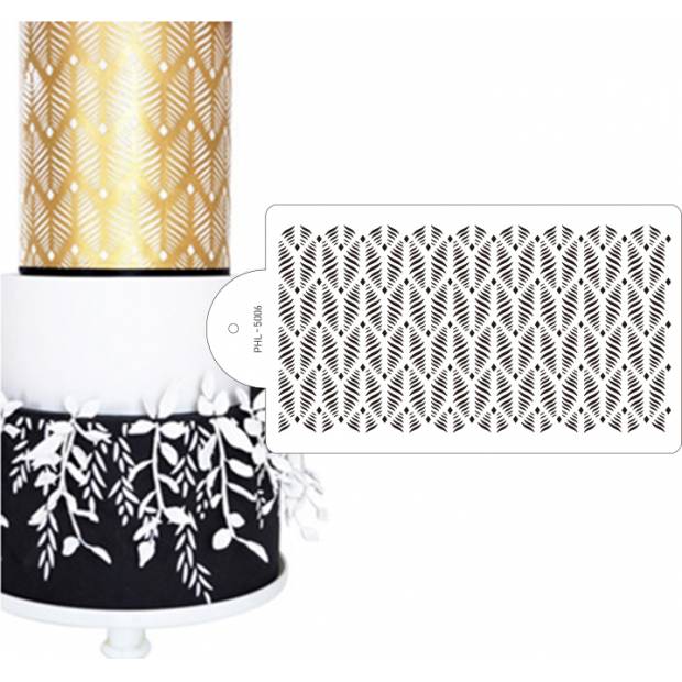 Profesionální stencil šablona na zdobení dortů Arrow vám usnadní práci. Vyrobeno z vysoce kvalitního materiálu, proto je bezpečné, šetrné k životnímu prostředí a ideální pro dlouhodobé používání. Stencil šablony jsouo také vhodné na zmrzlinové dezerty, horký fondán, máslový krém, čokoládový prášek nebo jakoukoli potahovací hmotu. Dodejte svému výtvoru trochu textury a hloubky pomocí této šablony na dorty.