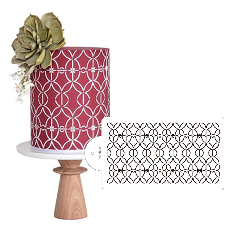Profesionální stencil šablona na zdobení dortů Latice vám usnadní práci. Vyrobeno z vysoce kvalitního materiálu, proto je bezpečné, šetrné k životnímu prostředí a ideální pro dlouhodobé používání. Stencil šablony jsouo také vhodné na zmrzlinové dezerty, horký fondán, máslový krém, čokoládový prášek nebo jakoukoli potahovací hmotu. Dodejte svému výtvoru trochu textury a hloubky pomocí této šablony na dorty.