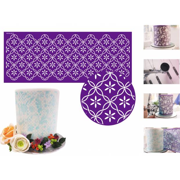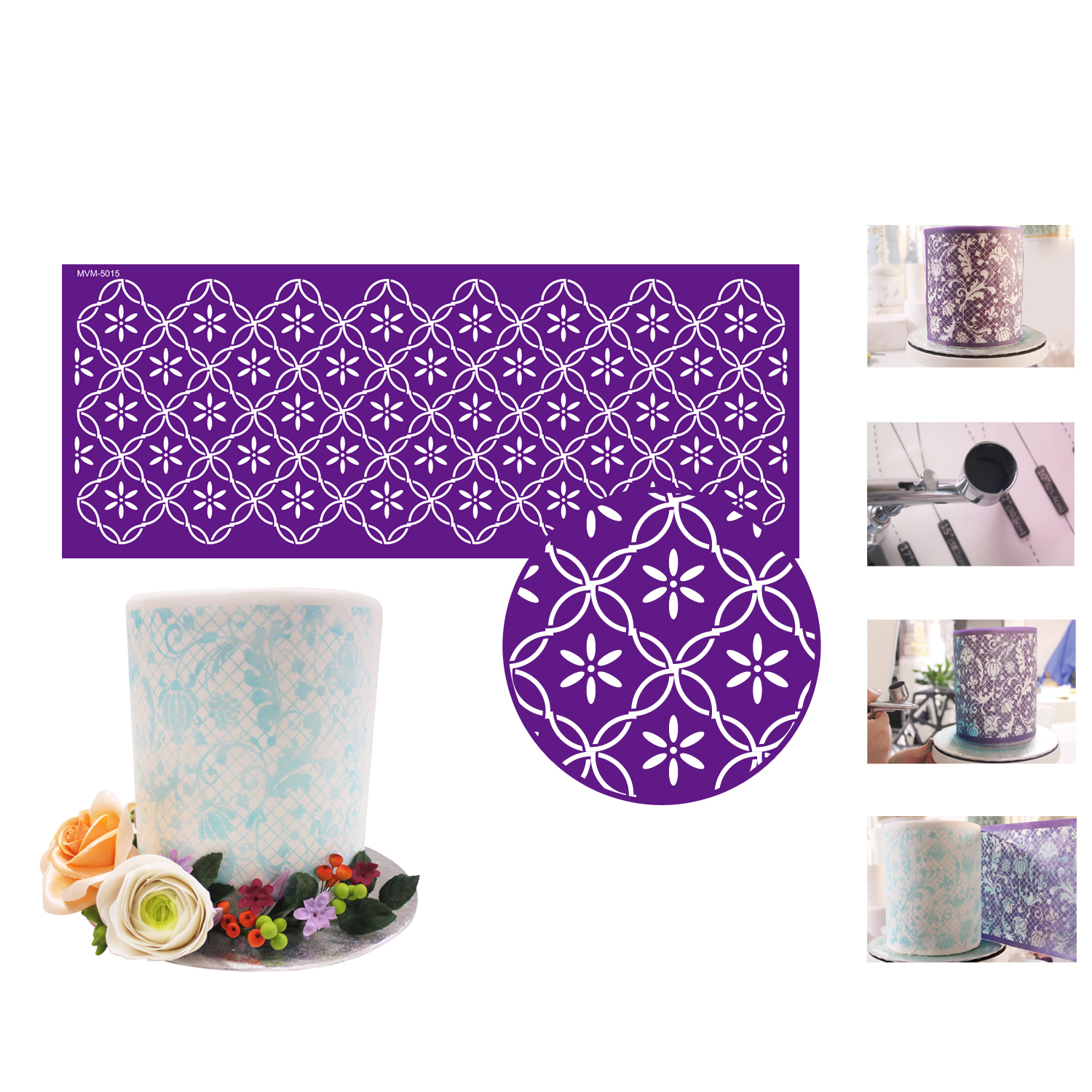 Profesionální šablona pro zdobení dortů je vhodná pro stencil a airbrush. Je potřeba ji přiložit na dort pevně a při aplikaci barvy s ní nehýbat. Jedině tak bude vzor naprosto dokonalý.