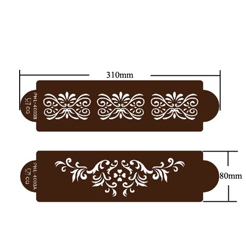 Profesionální stencil šablona na zdobení dortů s ornamenty vám usnadní práci. Vyrobeno z vysoce kvalitního materiálu, proto je bezpečné, šetrné k životnímu prostředí a ideální pro dlouhodobé používání. Stencil šablony jsouo také vhodné na zmrzlinové dezerty, horký fondán, máslový krém, čokoládový prášek nebo jakoukoli potahovací hmotu. Dodejte svému výtvoru trochu textury a hloubky pomocí této šablony na dorty.