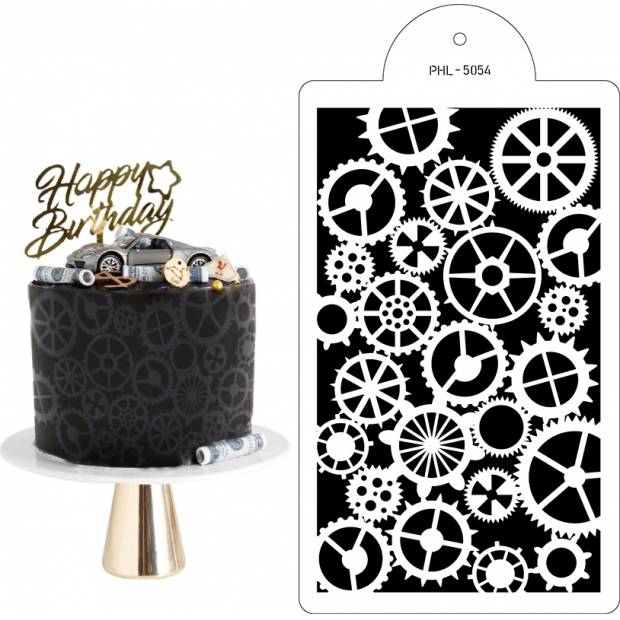 Stencil šablona ozubená kola 40x21cm - Cakesicq