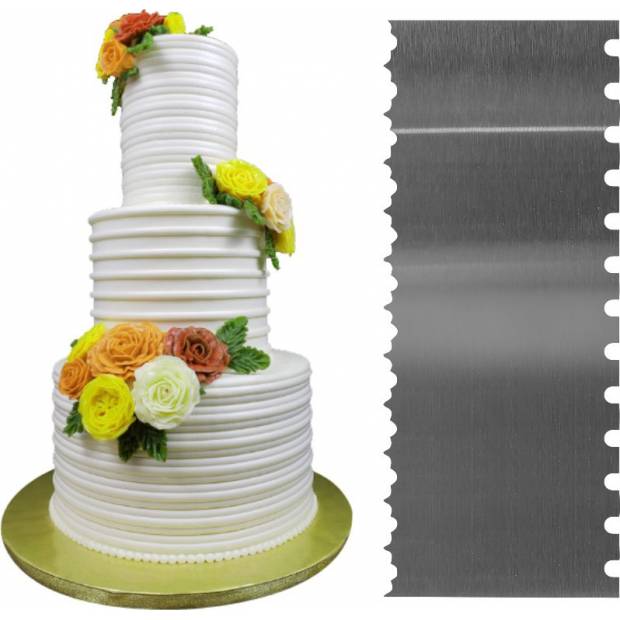 Praktická stěrka pro uhlazování okrajů dortů. Vyrobena je z nerezové oceli, která je tvrdá, houževnatá a nehrozí její rezivění. Použití špachtle na dort je bezpečné a zdravé, může přijít do přímého kontaktu s potravinami. Nezabere mnoho místa, snadno se přenáší nebo skladuje.