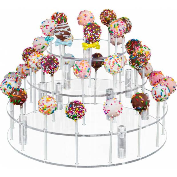 Plastový stojan na lízátka Cake pops. Vyrobeno z plexiskla a schváleno pro styk s potravinami. Stojany jsou navrženy tak, aby prodejce či hostitel mohl produkt snadno vystavit a obsloužit své zákazníky či hosty. Ideální pro vystavení barevných lízátek. Stabilní a odolný a snadno se čistí.