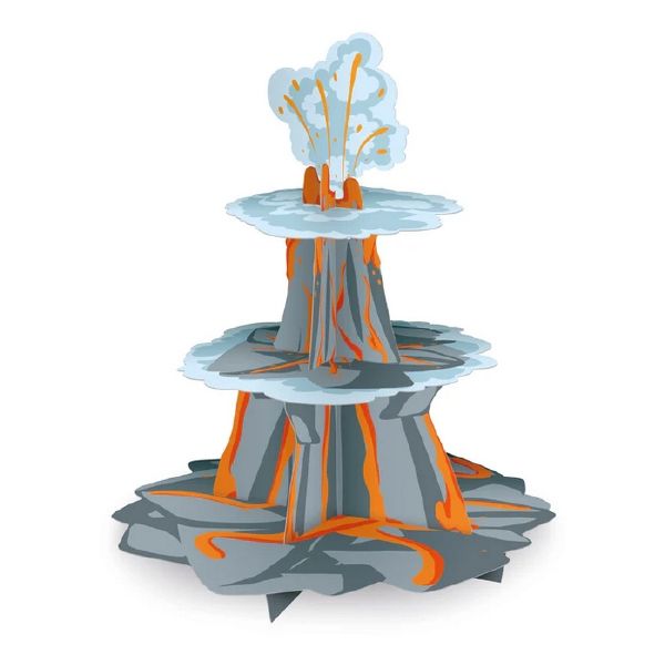 Stojan na cupcaky a muffiny je skvělý nápad na praktickou dekoraci stolu, zvláště když vypadá jako sopka. Na ní umístěné muffiny vytvoří kompozici, kterou budete chtít jíst i očima. A pohled na živé barvy přitáhne pozornost malých účastníků večírku a vykouzlí jim úsměv na tváři.
