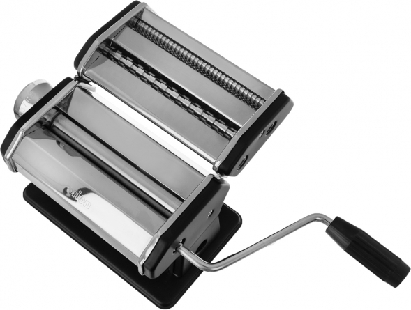 Mechanický nerezový strojek na přípravu domácích nudlí. S jeho pomocí vyválíte lehce zavadlé nudlové těsto v šíři až 15 cm. Samotnou tloušťku těsta lze regulovat otočením bočního kolečka od 3 mm až po tenké, skoro průhledné pásy těsta tloušťky 0,5 mm. Takto připravené pláty se hodí na vynikající domácí lasagně nebo na další zpracování.