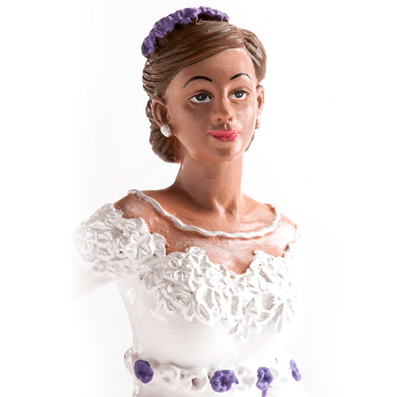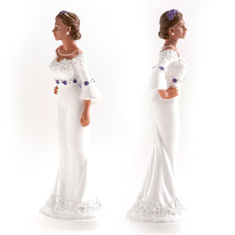 Elegantní sváteční ozdoba je ideální pro zdobení svatebních dortů. Svatební figurka je jednoduché a elegantní řešení pro zdobení dortů. Hlavní a jedinou postavou této dekorace vyrobené z pryskyřice je madam ve velmi romantických šatech. Vyznačuje se spontánním, zábavným a elegantním stylem. Splňuje všechny požadavky evropských norem a je vhodná pro styk s potravinami. Výrobek je vhodný pro profesionální použití v cukrárnách. Tato nejedlá dekorace se dá využívat opakovaně, můžete si ji schovat jako vzpomínku na váš svatební den. Výška 16 cm.
