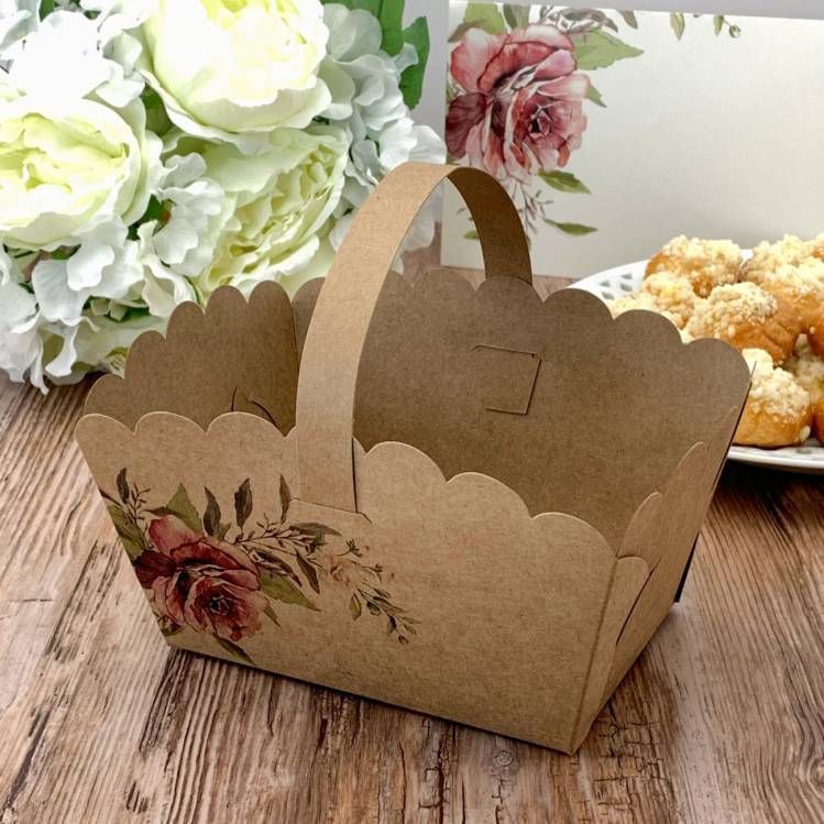 Úžasný svatební košíček s ouškem je vhodný na svatební výslužky, cukroví i koláčky .